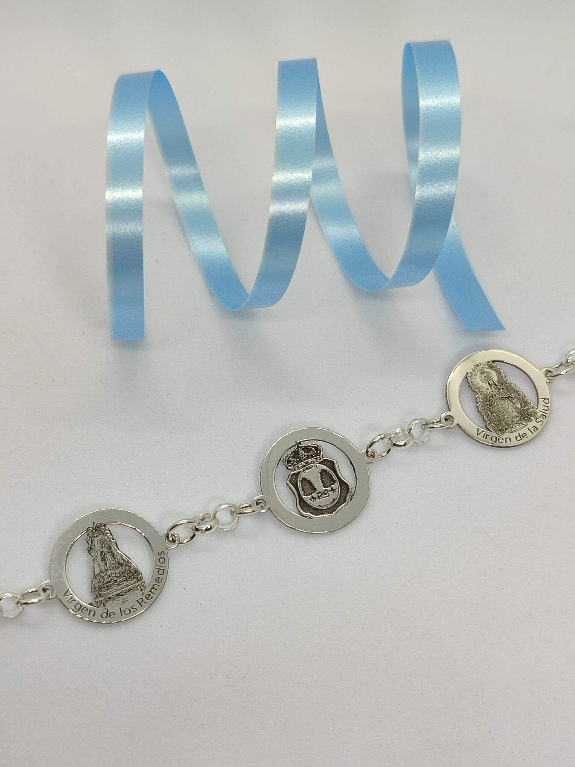 Pulsera de Plata de 1ª Ley con la imagen de la Virgen de los Remedios, Virgen de la Salud y escudo de Fregenal de la Sierra.